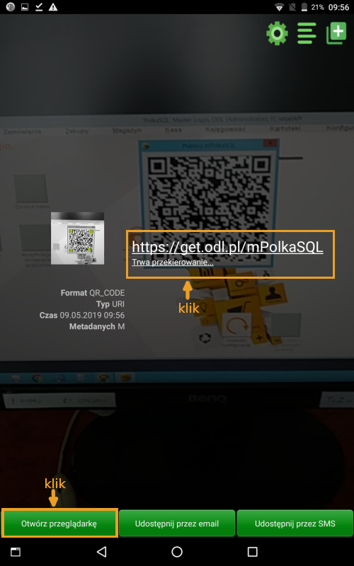 2. Kod QR zawiera link HTTP. Otwórz do w przeglądarce. Po chwili rozpocznie się pobieranie pliku mPolkaSQL.apk.