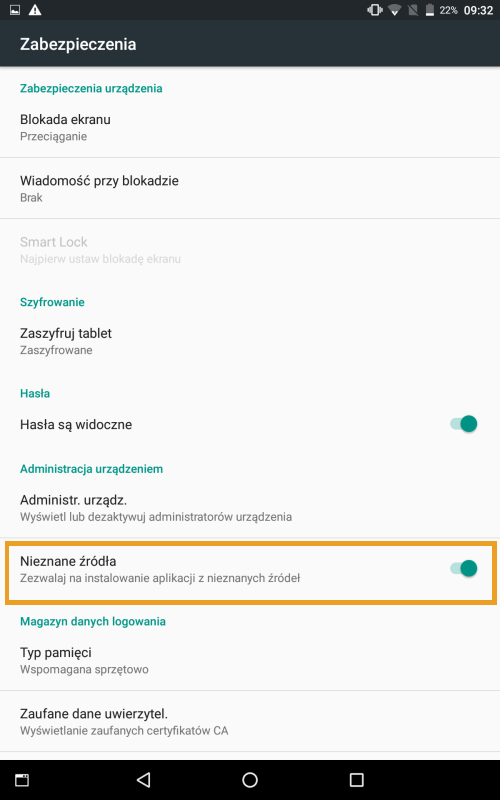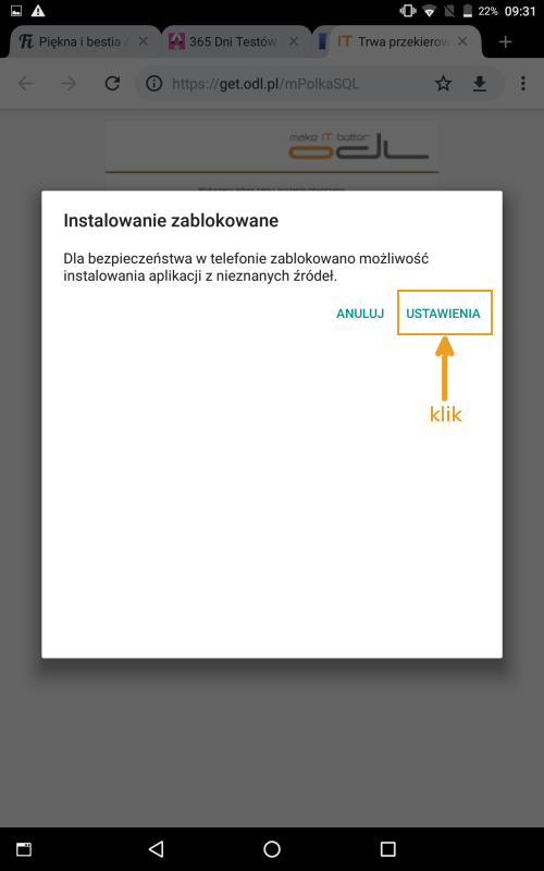 Może pojawić się informacja o włączonej blokadzie instalowania aplikacji z nieznanych źródeł.